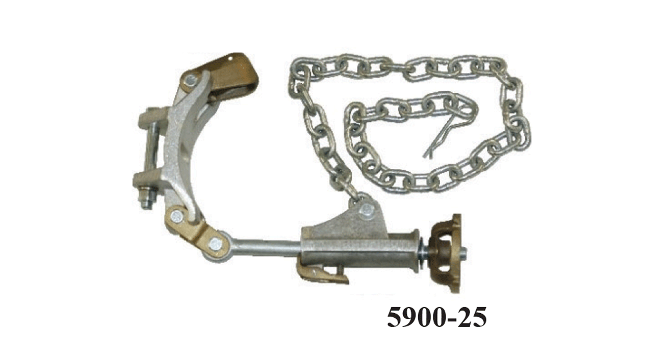 • A wire tong snubbing bracket provides a stationary base for wire tongs and auxiliary arms. Complete with chain tightener.